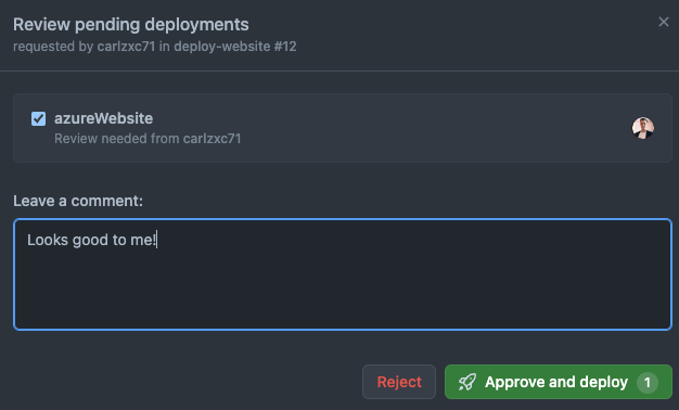 Do with those thoughts and discuss with your team as you please. If you feel like it is too much and adds more work than you would like then you can simply remove the environment part and not require that extra approval-step. You can still keep the job in Github Actions for reference and troubleshooting.